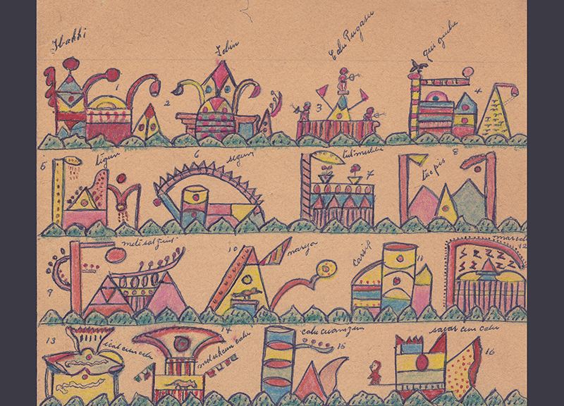 Ledger and card drawings are very rare. Ledger drawings use pictographic writing to record long healing chants used by Inaduleds. Card drawing often depict galus (spirit resting places) as seen in the dreams of Guna Neles (spirit masters).