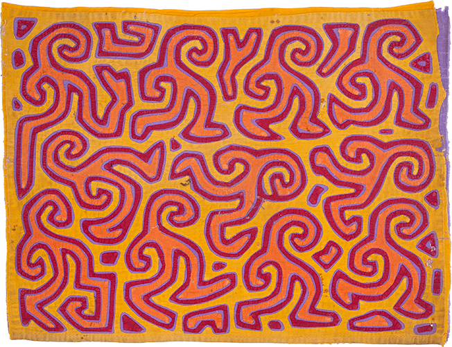 Early molas tend to be larger, less colorful and less precise than more modern examples. They often appear to be abstract or non-figural, but will convey Guna spiritual concepts not apparent to outsiders.